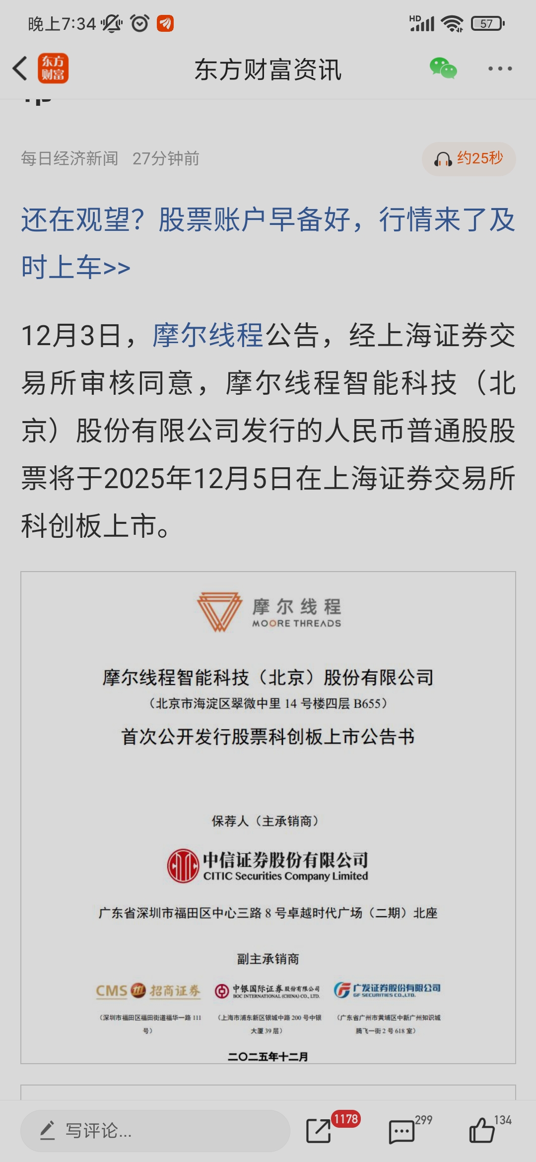 $摩尔线程(SH688795)$ 12月5号上市交易#强势机会# #股市怎么看# #投资干货# #投资随笔#