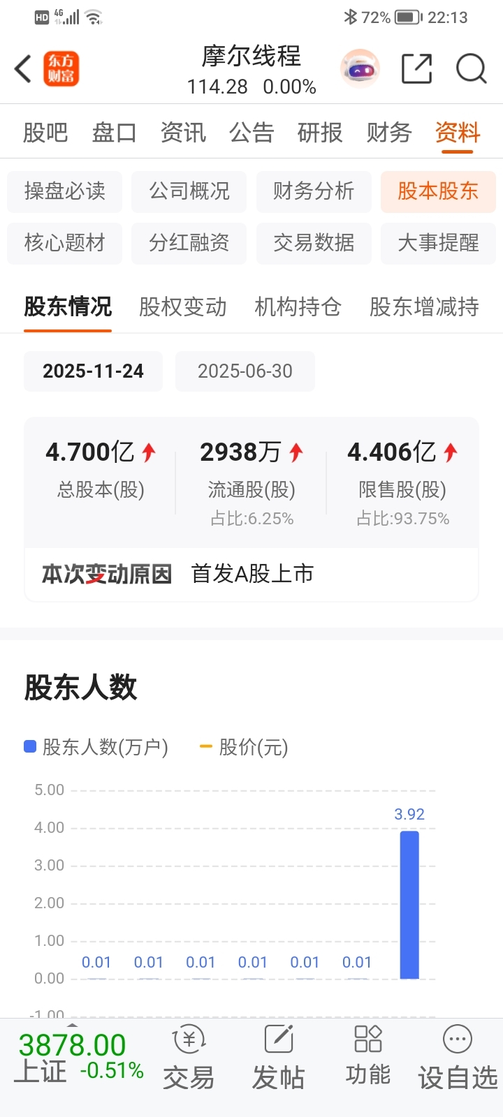 摩尔第一批上市也才2938万股,居然有人说会破发,脑子确实是个好东西。