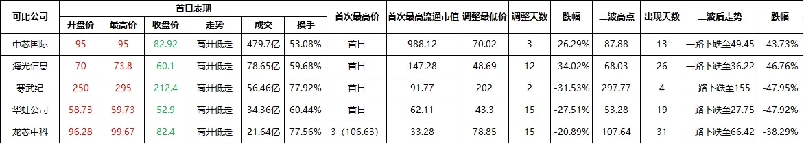 $摩尔线程(SH688795)$ 历史上芯片核心股上市首日走势图