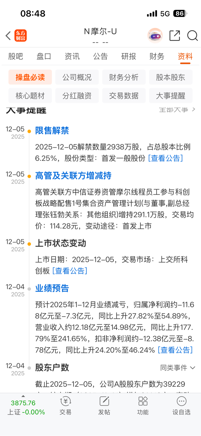 $N摩尔-U(SH688795)$ 上市第一天就解禁