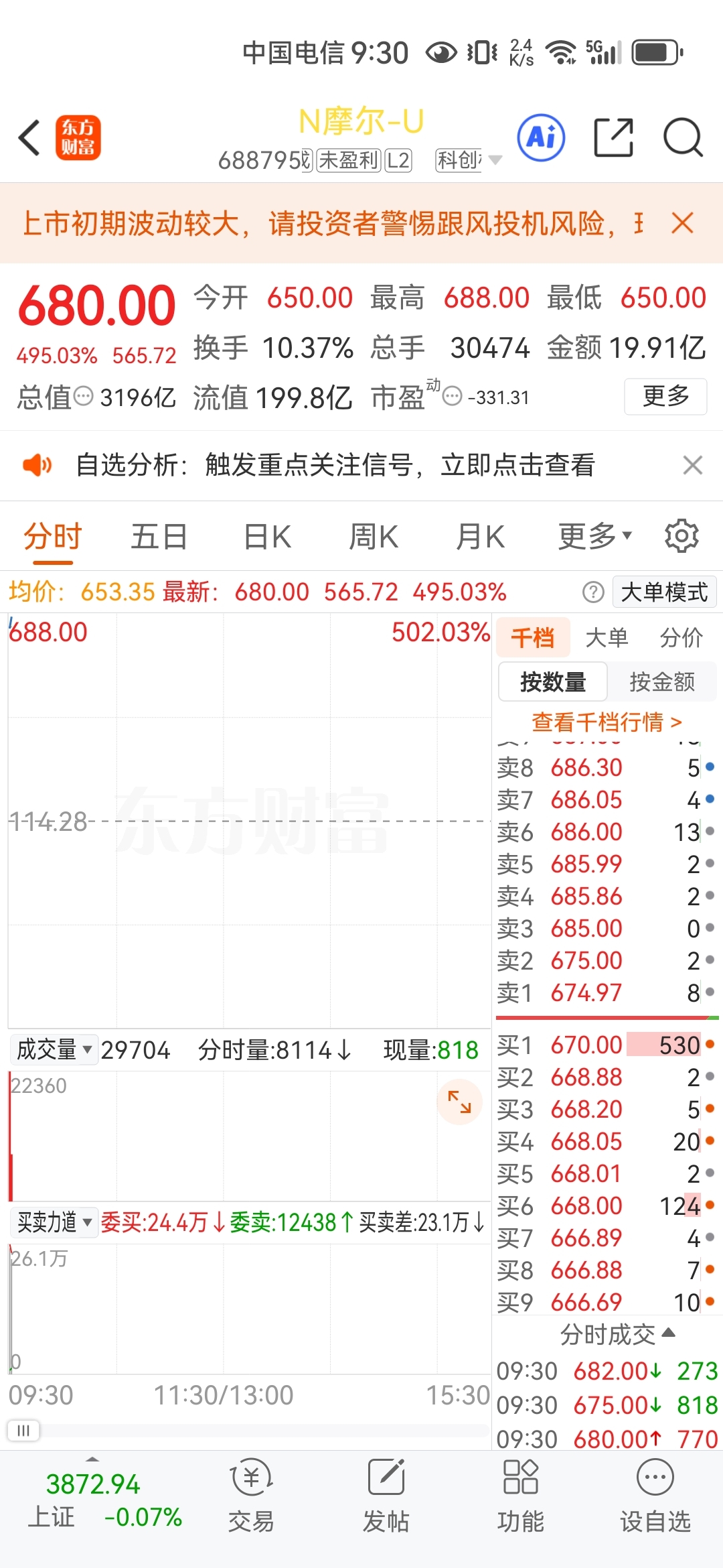 $N摩尔-U(SH688795)$ 十年大顶!