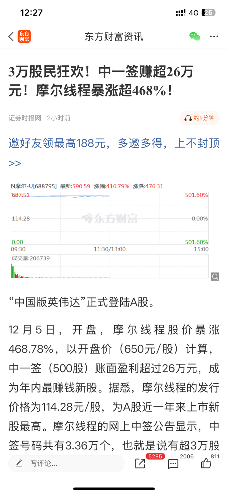 $N摩尔-U(SH688795)$ 感谢兄弟们,知足了,中签的兄弟们这周都好好响应国家提振消费吧,全国经济需要我们贡献力量