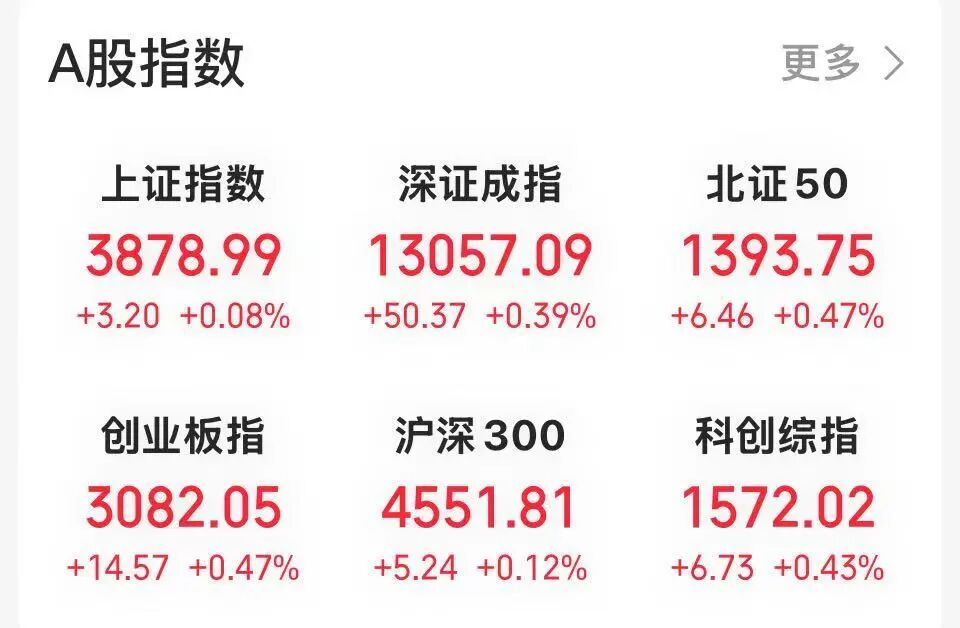 今日早盘,A股三大股指下探回升,AI硬件板块显著回暖,带动创业板指领涨。截至午间休市,上证指数报3878.99点,涨0.08%;深证成指、创业板指分别上涨0.39%和0.47%。