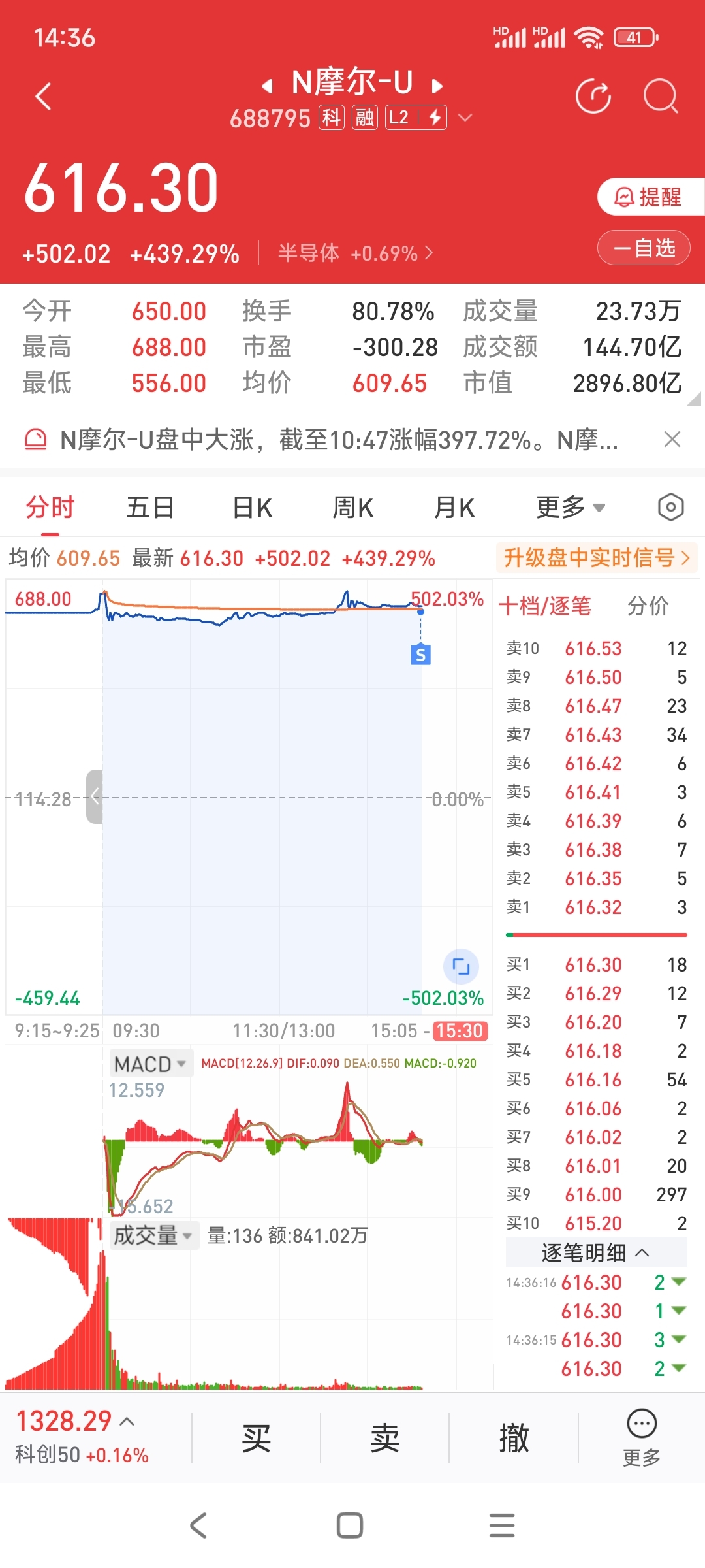 $N摩尔-U(SH688795)$ 已卖,留下的发财,感谢摩尔庄园,三年没中签,今天一把回来了