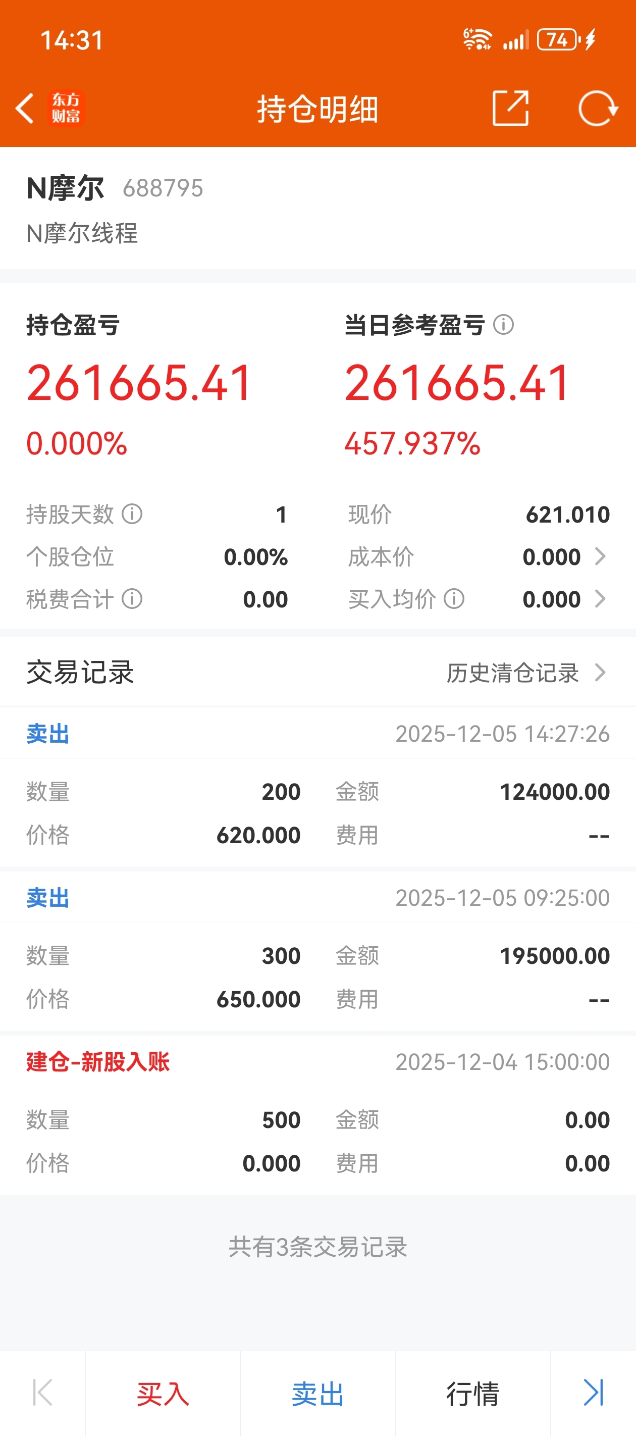 $N摩尔-U(SH688795)$ 感谢财神爷让我中签,感谢摩王,感谢主力大哥,入市四年半,亏损二十万,一朝翻身,衷心的感谢