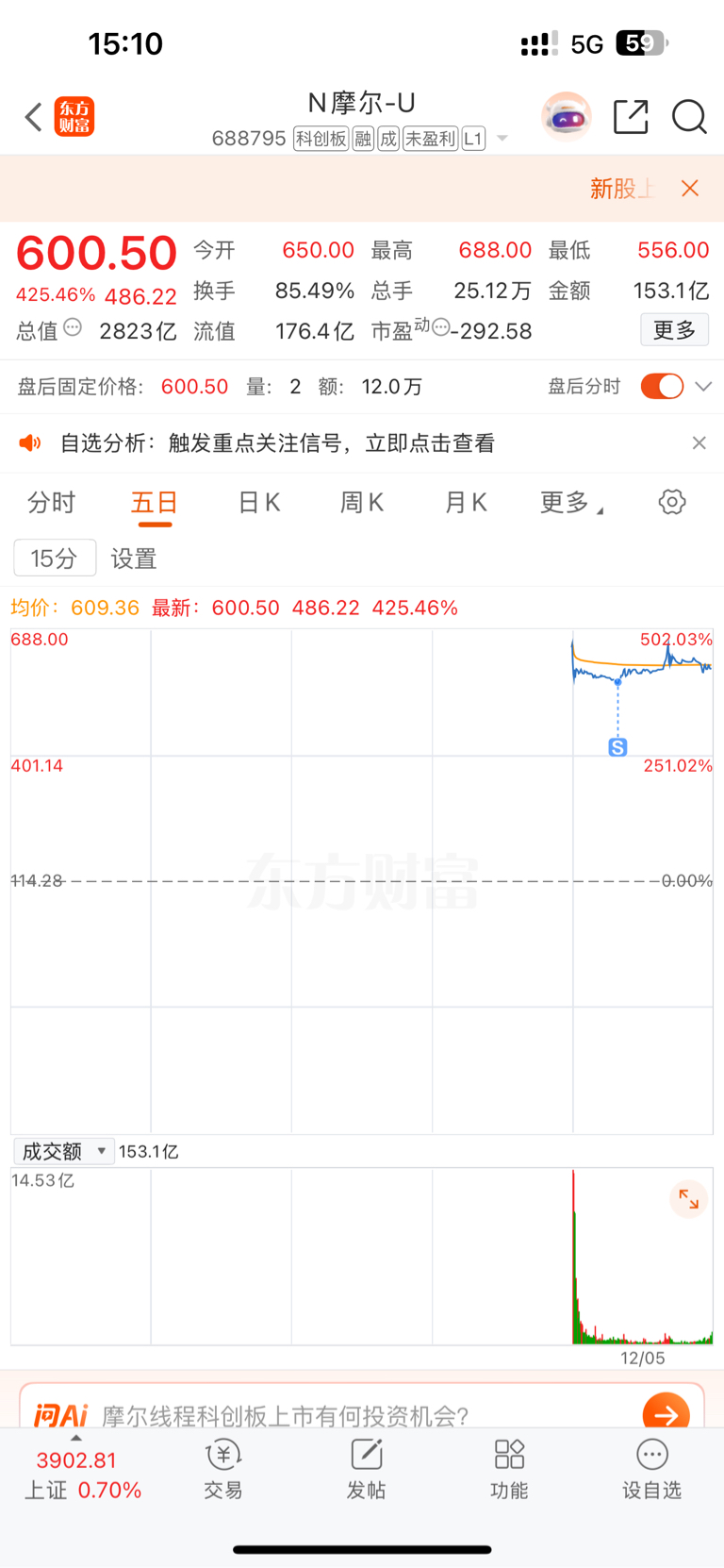 #收盘点评# $N摩尔-U(SH688795)$ 摩尔线程