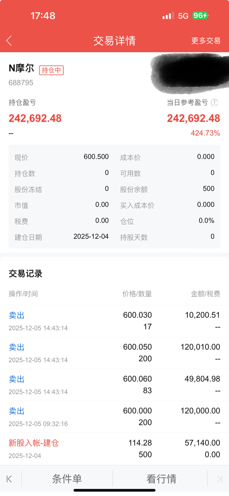 $N摩尔-U(SH688795)$ 卖的位置不好,差了好几万