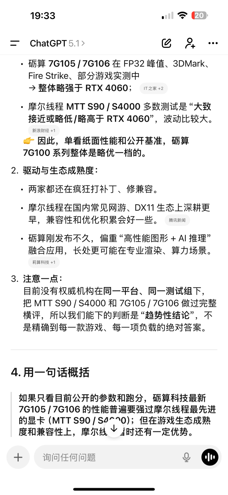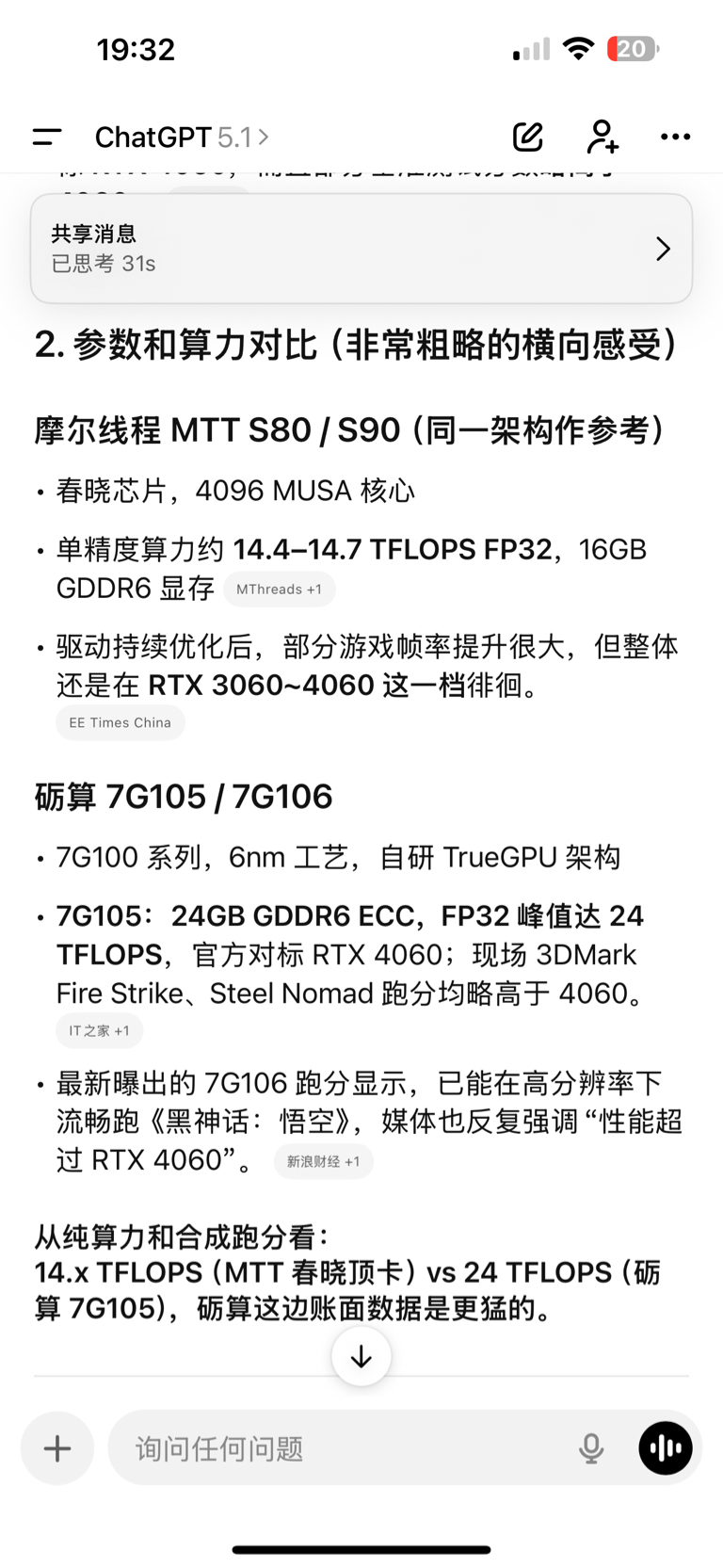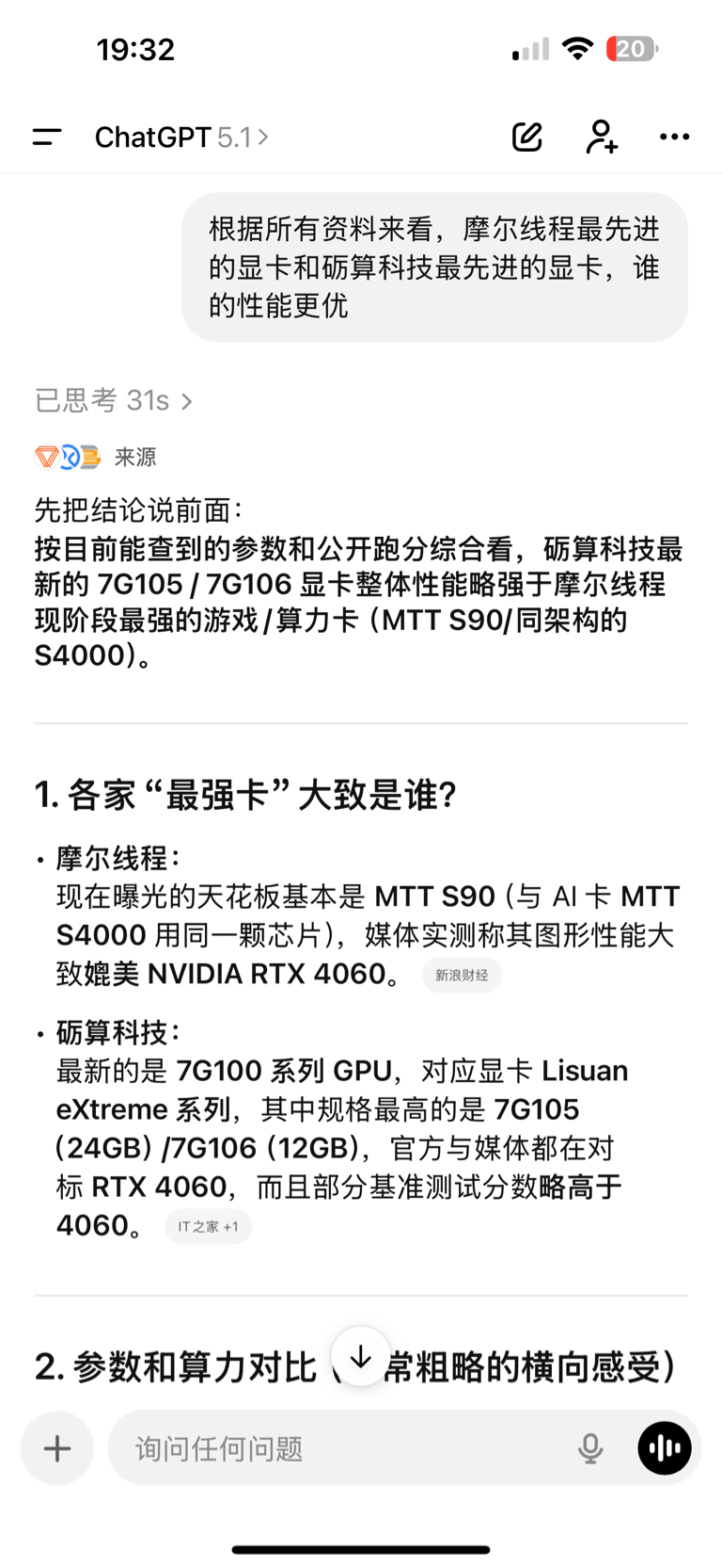 世界最聪明大模型给出的答案,砺算科技的显卡性能明显领先摩尔线程,砺算科技还率先落