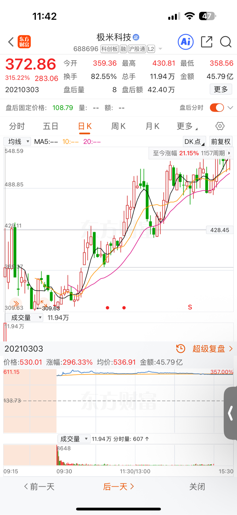 $N摩尔-U(SH688795)$ 我21年中了极米收盘价530,看这走势,摩尔周一估计能冲到650左右