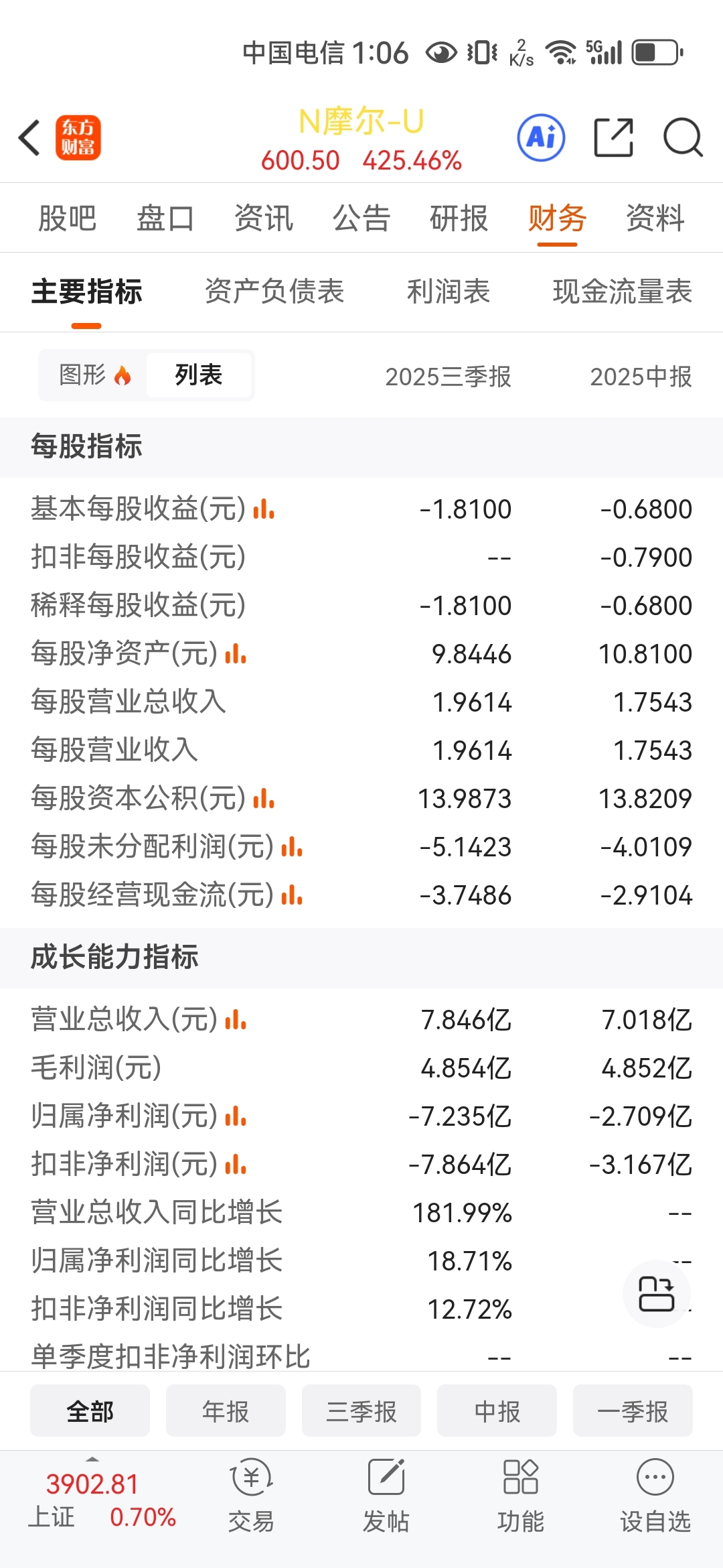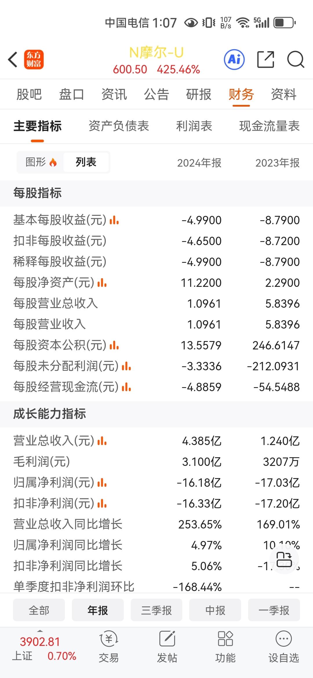 中寒武纪与摩尔线程的一些数据对比,可以看出目前摩尔线程与寒武纪是云泥之别,完全不
