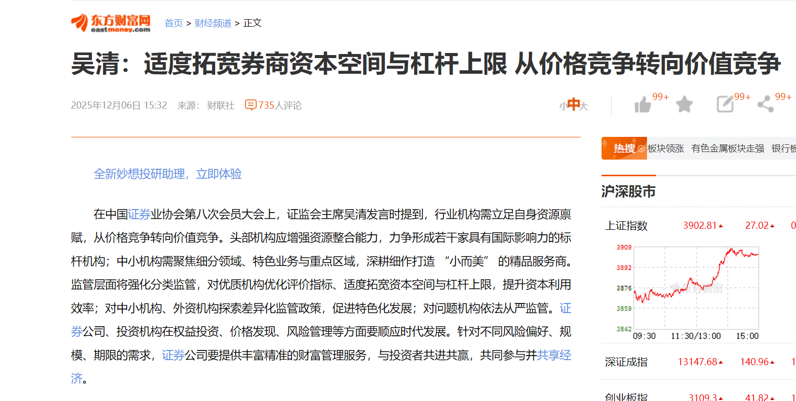 对次新的超级刺激政策来了----吴清:适度拓宽券商资本空间与杠杆上限 从价格竞争转向价值竞争