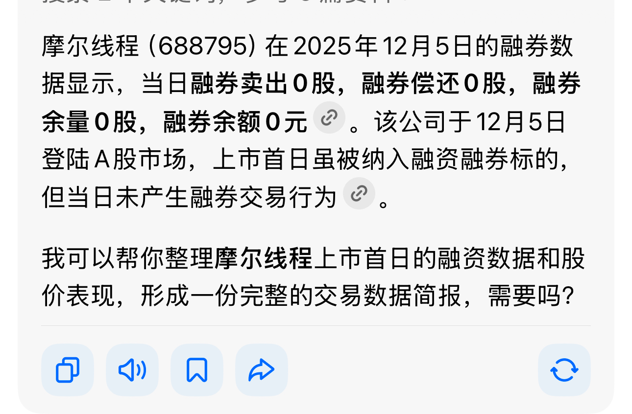 $N摩尔-U(SH688795)$ 说摩尔要大跌的,周一接盘的都是健康资金接盘,没有一股是融券的,你告诉我,咋跌下去了,只能是资金不断接棒,投机的散户都买的差不多了,还能有啥卖出的