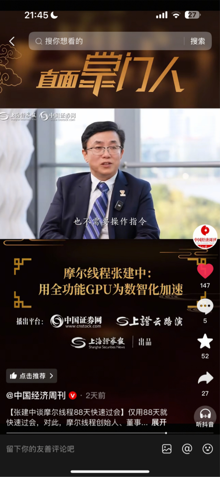 关注摩尔线程的朋友请搜看此视频,也许会豁然开朗。