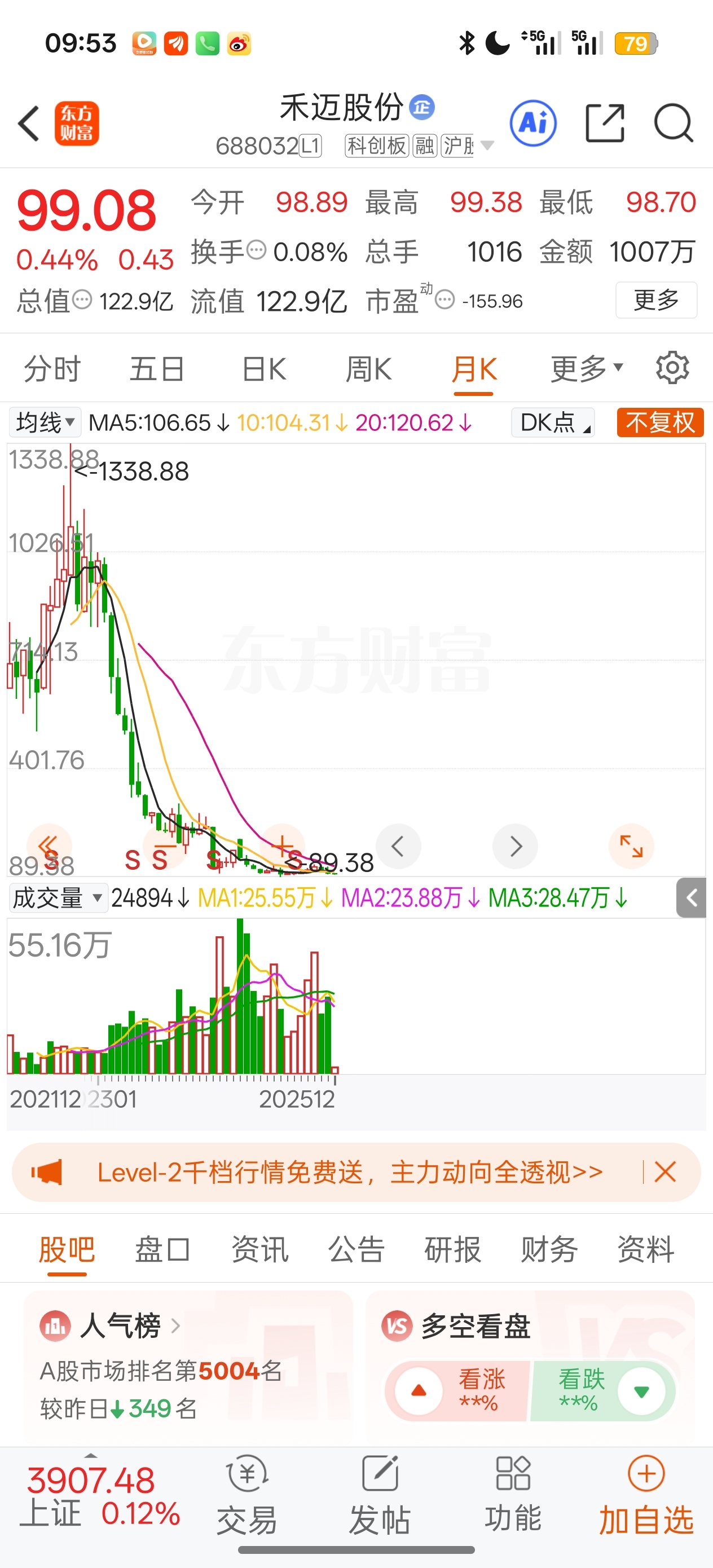 和这个一模一样,当时弃购很多,股价差点超越茅台,现在99,区别就是一个全流通,一