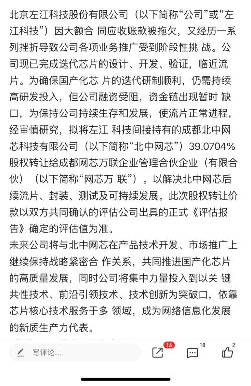 左江科技 曾经是 寒武纪的大哥、股价最高300元、因被恶意 欠货款3亿元导致退市,现己起䜣到法院要求返还货款 及利息 共计3亿元。及申请法院 对 左江 的退市处罚,既与 撒销!左江科技于 2007年成立 荣获工信部, 北京市 多种 专利、实用奖项,获奖无数!左江科技 是被严重误伤的 一颗科技之星!