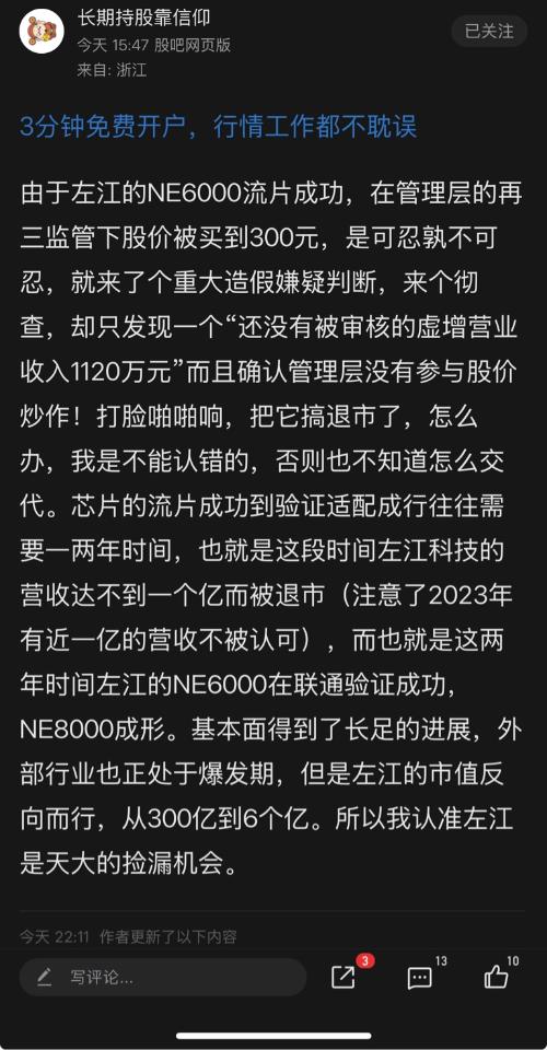 左江科技 曾经是 寒武纪的大哥、股价最高300元、因被恶意 欠货款3亿元导致退市,现己起䜣到法院要求返还货款 及利息 共计3亿元。及申请法院 对 左江 的退市处罚,既与 撒销!左江科技于 2007年成立 荣获工信部, 北京市 多种 专利、实用奖项,获奖无数!左江科技 是被严重误伤的 一颗科技之星!