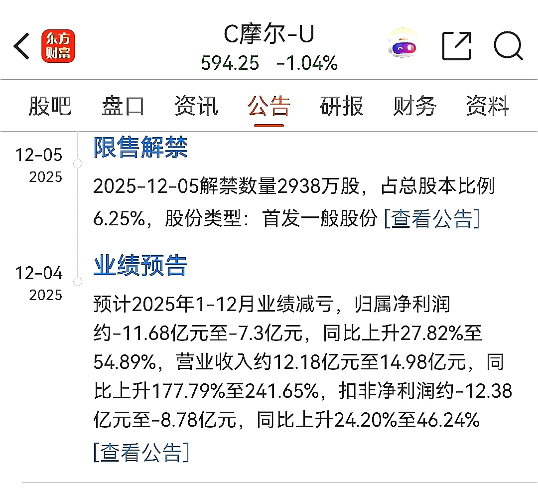 $C摩尔-U(SH688795)$ 2025营收12.18亿~14.98亿,净利-11.68亿~-7.3亿!牛!牛!真牛!