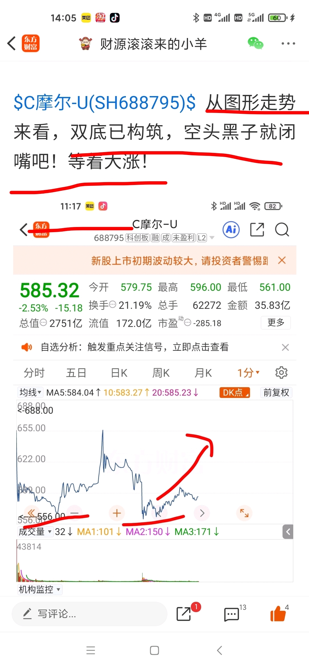 $C摩尔-U(SH688795)$ 看今天的走势,觉得昨天说的是对的