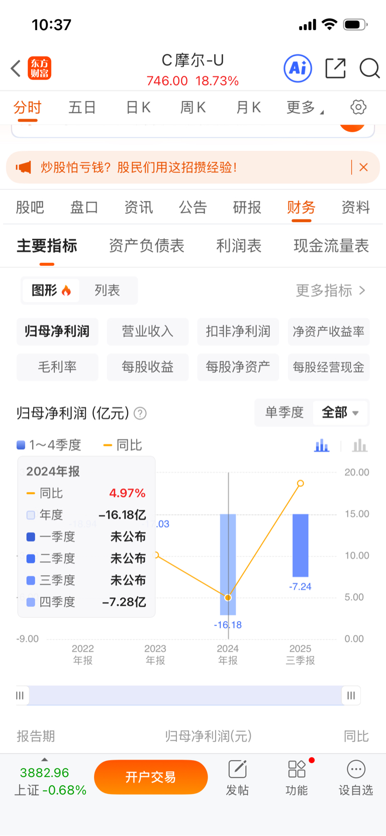 $C摩尔-U(SH688795)$ 不是自己的钱,真是随便造,基金抱团,真是没下线,一个严重亏损的公司,还能这样瞎草