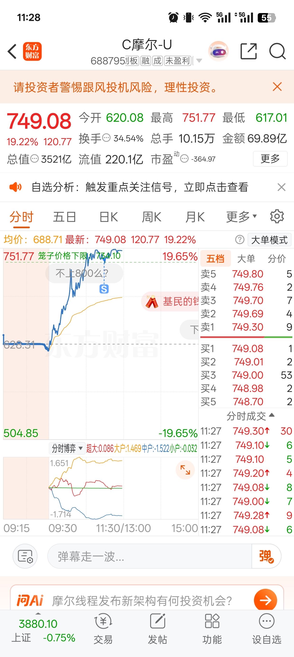 $C摩尔-U(SH688795)$ 先走了,祝各位勇士们发财,可惜昨天走多了不然今天也算是回了一口血#复盘记录# #炒股日记#