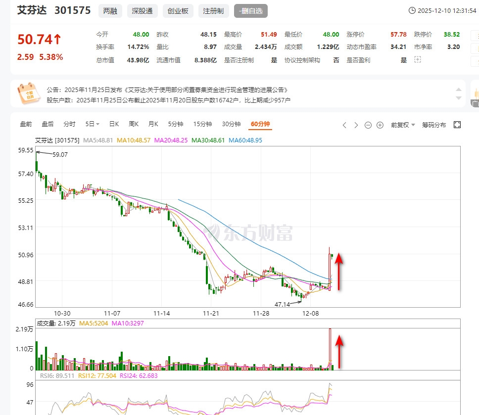 创业板$艾芬达(SZ301575)$ 今天有异动?不会同一个主力吧