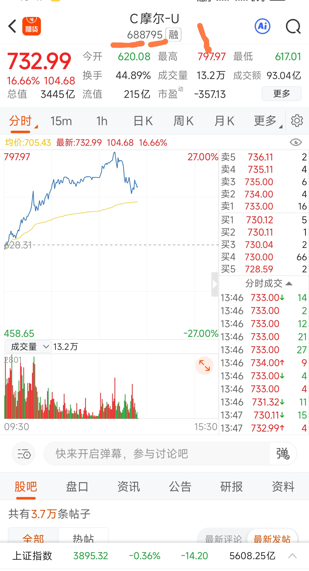 真牛p|US!!!第一天上市高点是编码前三位688,今天刚才高点797.97点过