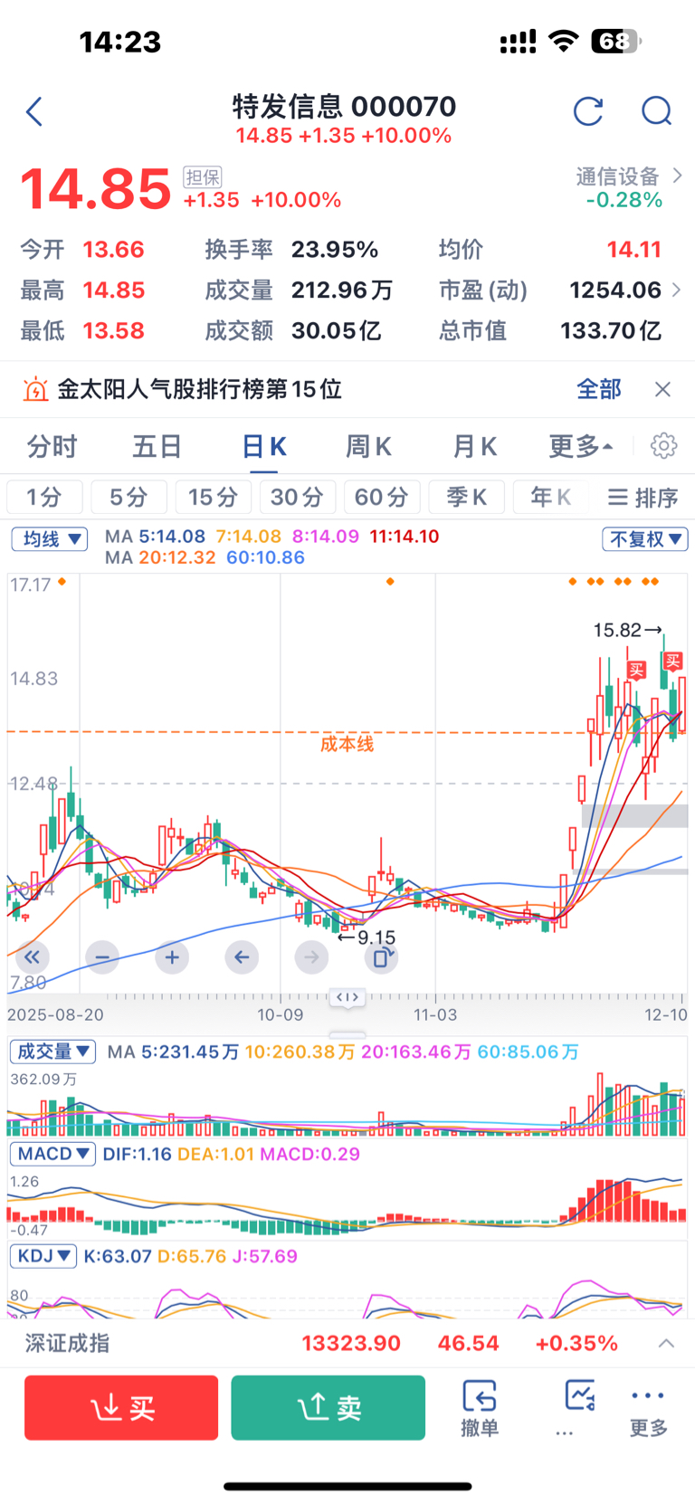 $C摩尔-U(sh688795)$ $永辉超市(SH601933)$ $特发信息(SH000070)$#炒股日记#