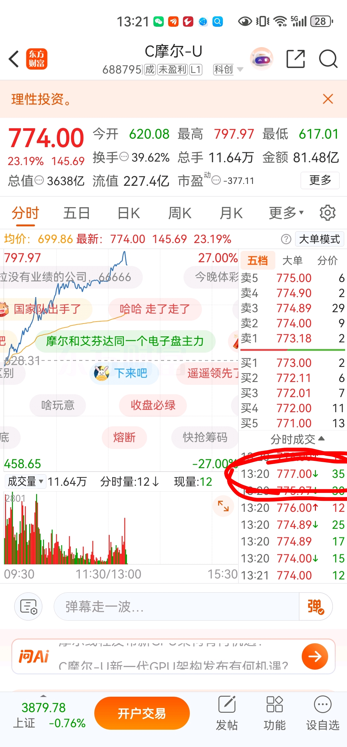 $C摩尔-U(SH688795)$ 弃弃弃散火暗语出来了,就下来了