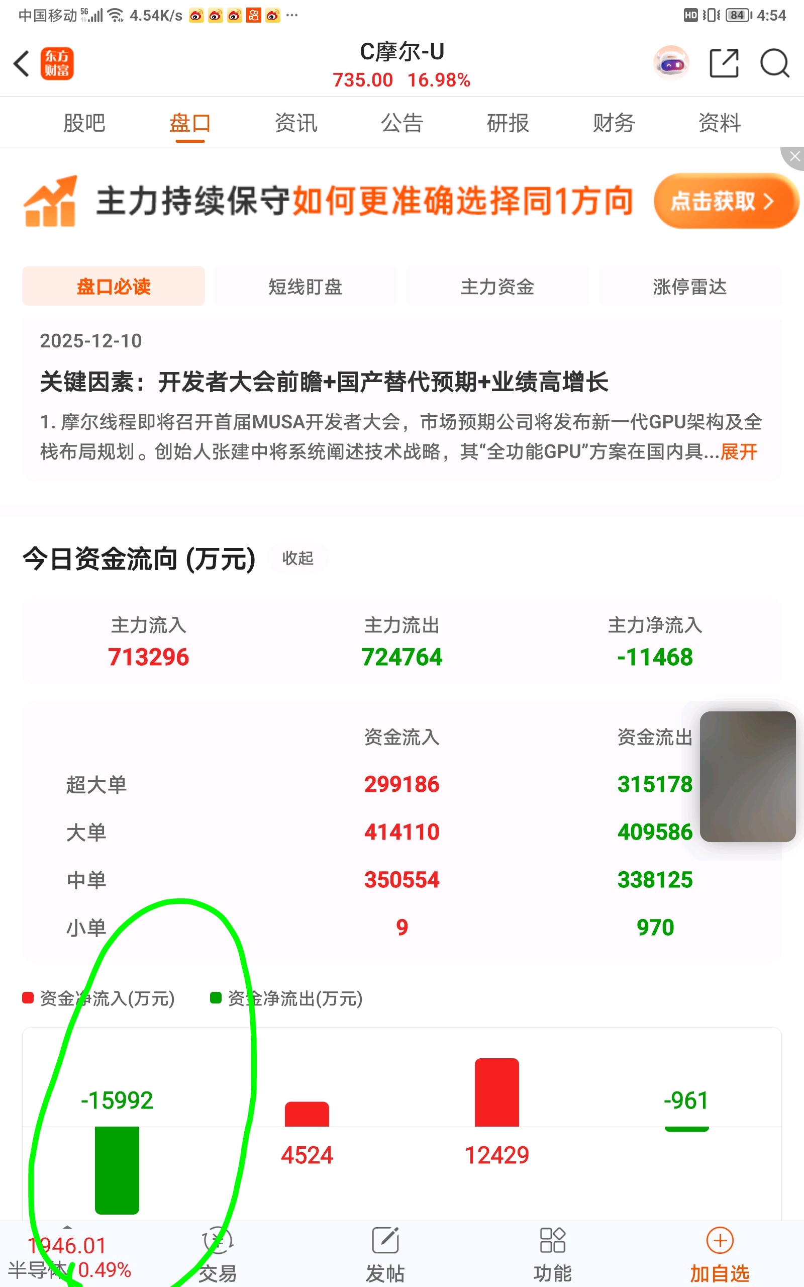 拉高出货,超大单逃跑1.5亿元,散户慢慢接盘站岗在山巅上。