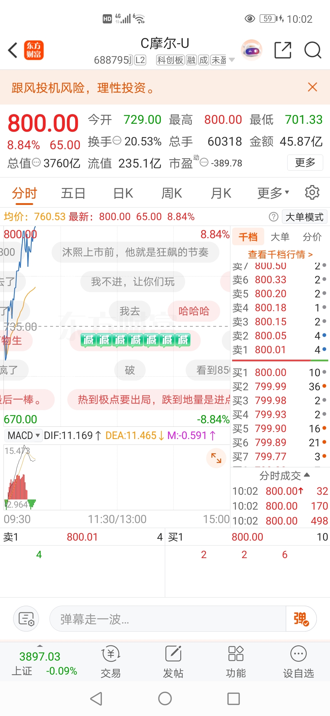 $C摩尔-U(SH688795)$ 800元