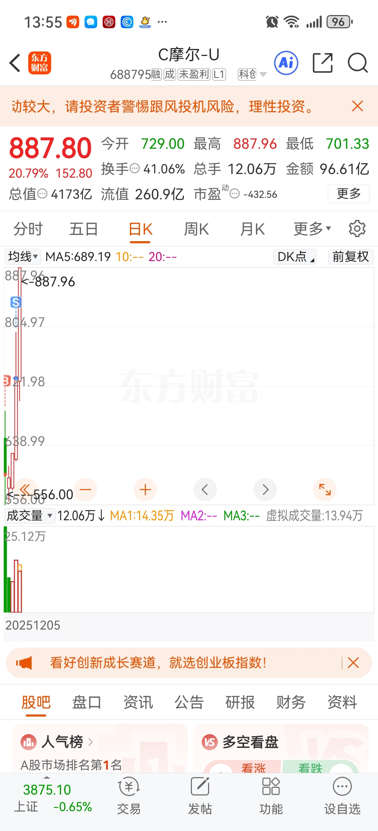 $C摩尔-U(SH688795)$ 没那个命,拿不住,昨天888挂的,结果我手贱撤了,733走了