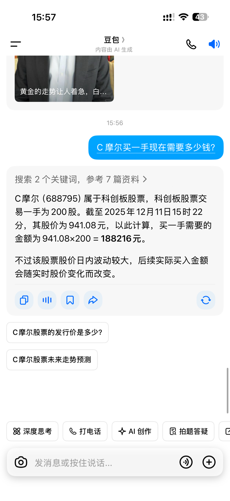 $C摩尔-U(SH688795)$ 不是10w一下小散玩的
