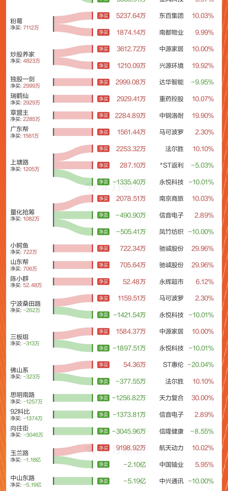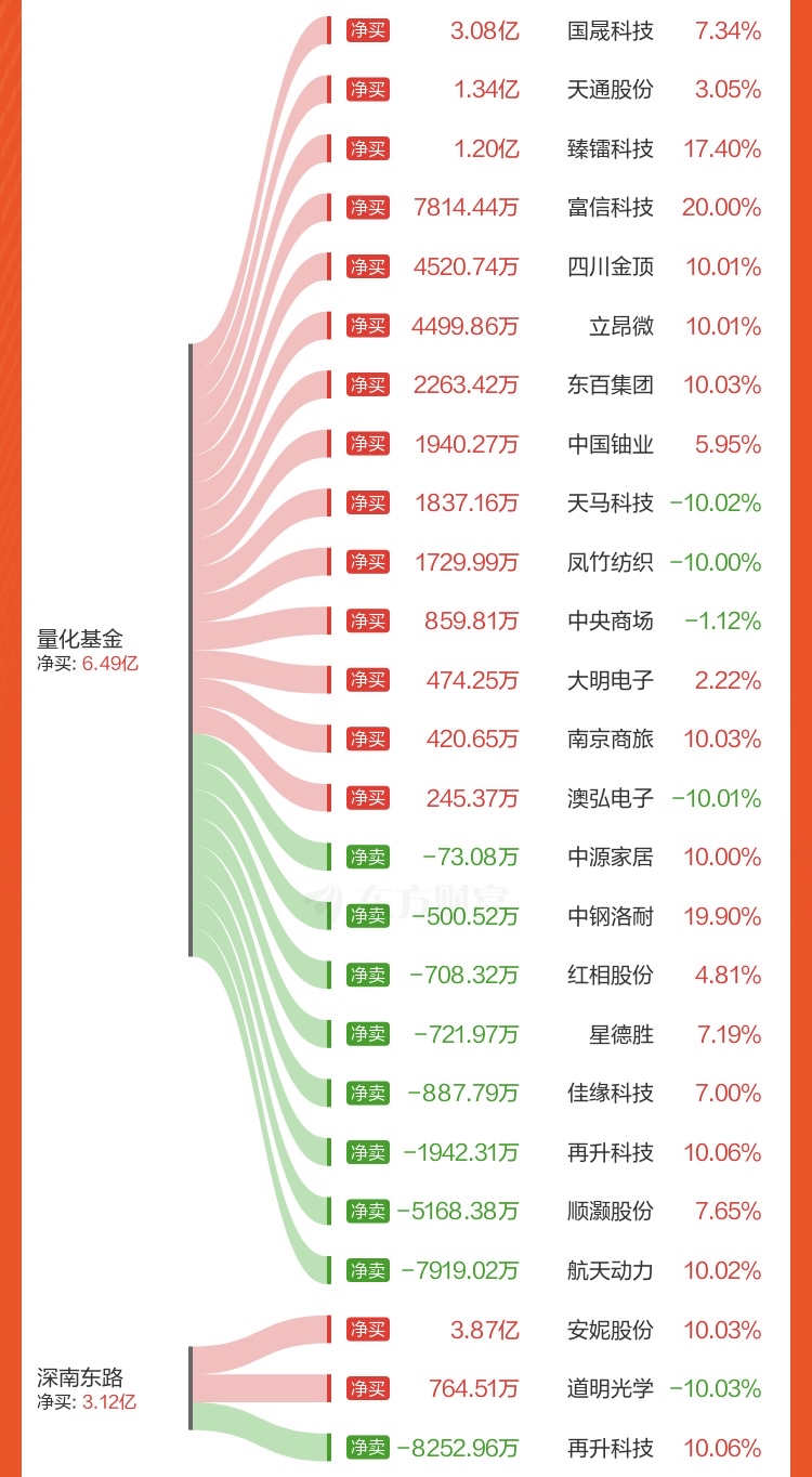 游资席位净买入金额最高的个股是安妮股份,“深南东路”净买入3.87亿元。