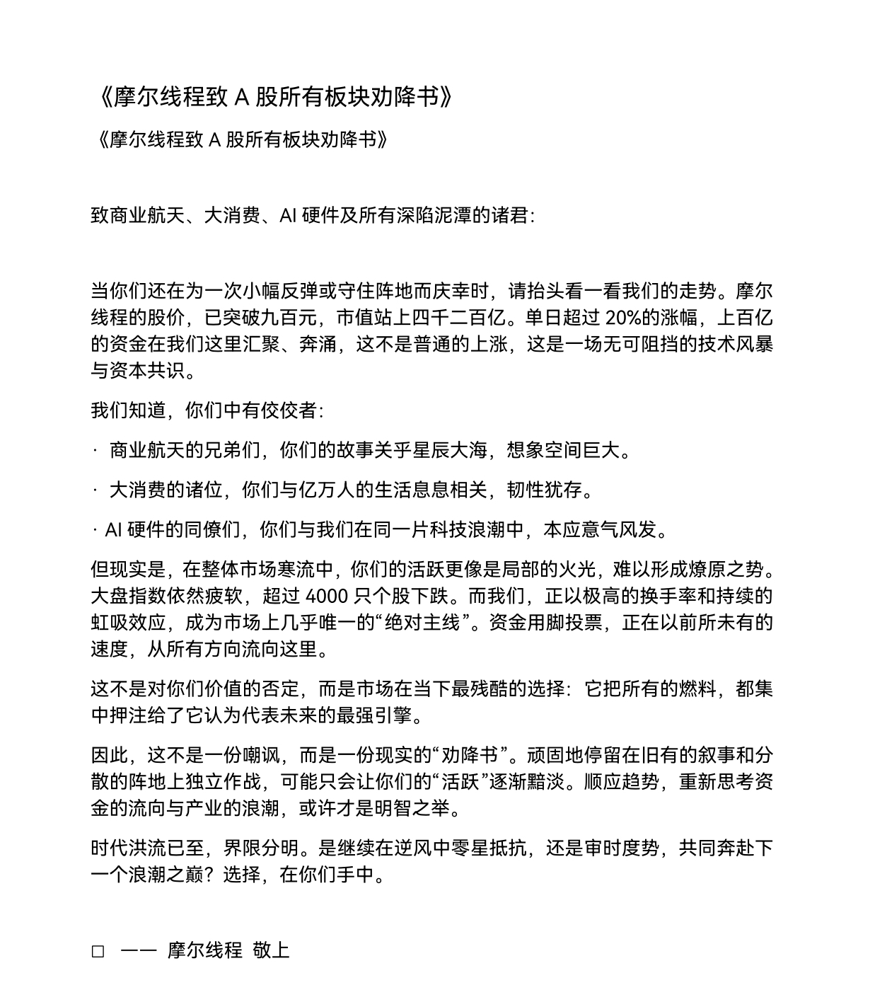 郑重声明:用户在财富号/股吧/博客等社区发表的所有信息(包括但不限于文字、视频、音频、数据及图表)仅代表个人观点,与本网站立场无关,不对您构成任何投资建议,据此操作风险自担。请勿相信代客理财、免费荐股和炒股培训等宣传内容,远离非法证券活动。请勿添加发言用户的手机号码、公众号、微博、微信及QQ等信息,谨防上当受骗!