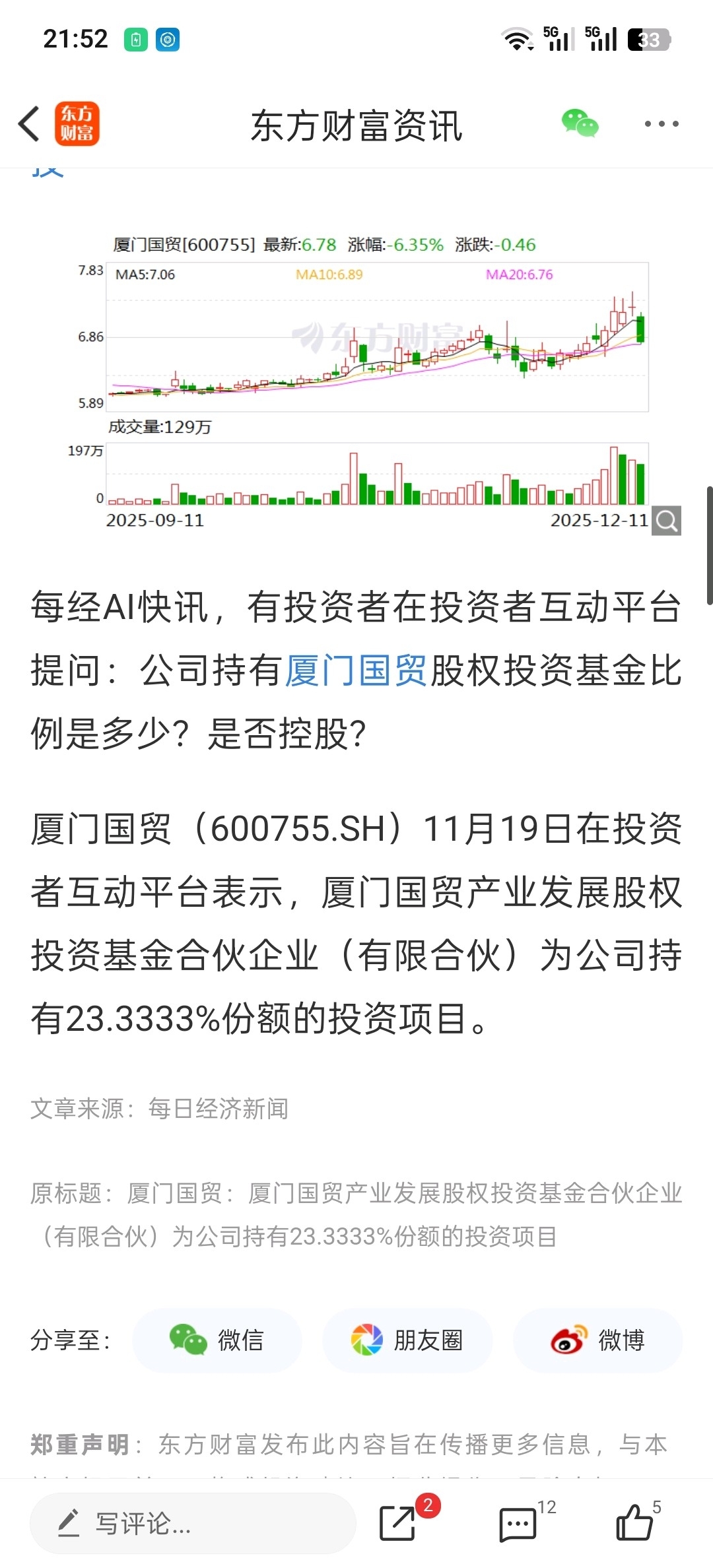 $C摩尔-U(SH688795)$ 福建,厦门国贸这两天持有摩尔线程,增长到33亿市值,最大受益福建公司。而七匹狼才4000千万。