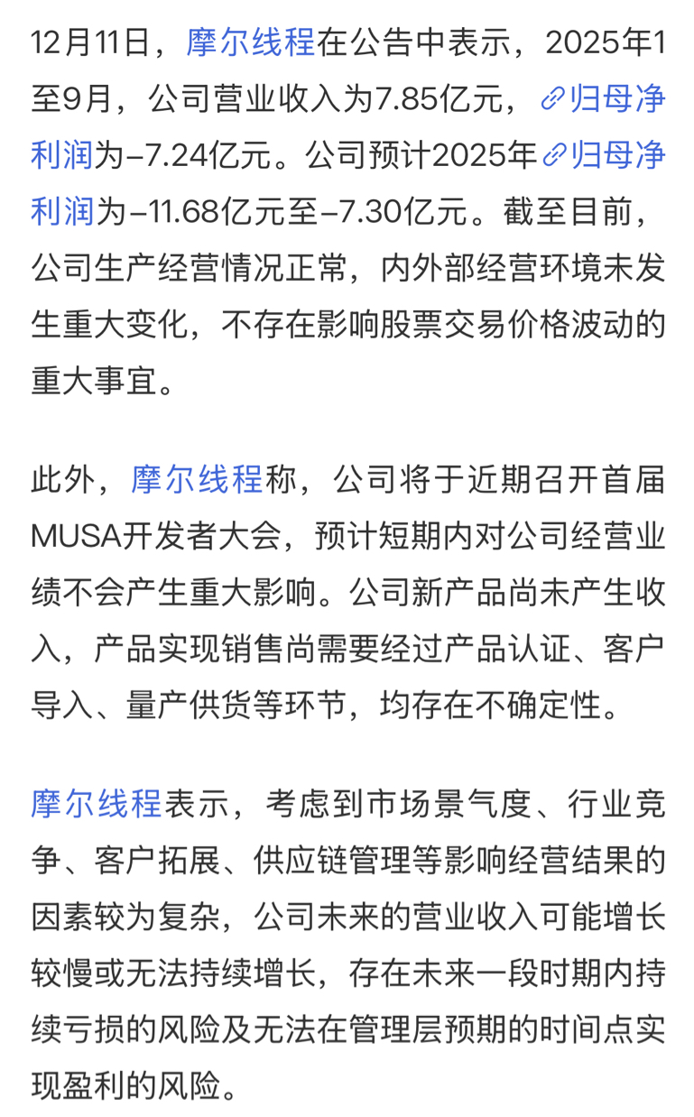 $摩尔线程-U(SH688795)$ 营收7个亿,净利润亏损12个亿,正常情况下市值不会超过100亿,现在4000亿,很多散户不知道4000亿需要多大基本面支撑,狂热过后一地鸡毛,大家都在赌自己不会接最后一棒$沐曦股份(SH688802)$