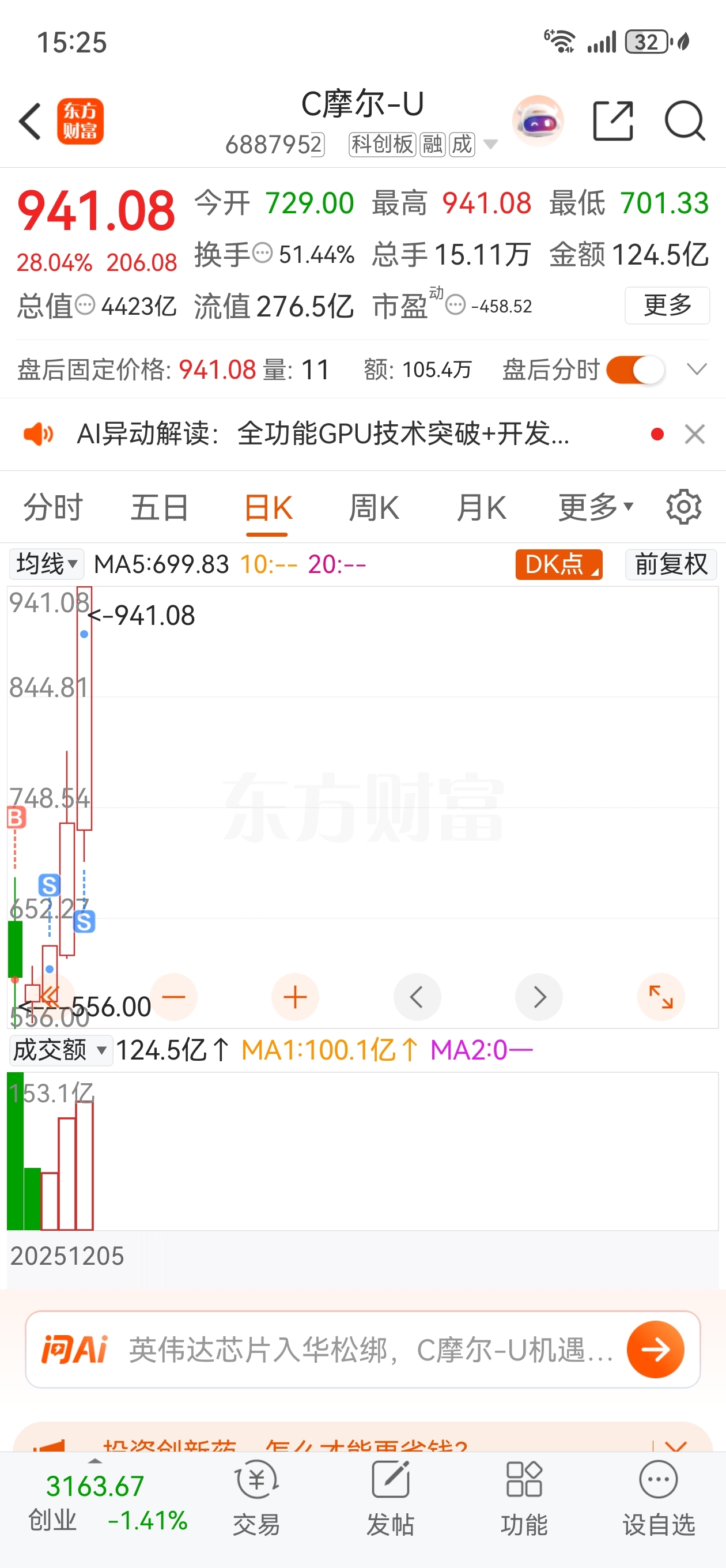 $摩尔线程-U(SH688795)$ 热门新股就是首发打下鸡血,后面会进入漫长的价值回归阶段!昨天挣了四五十个点,已经清仓!