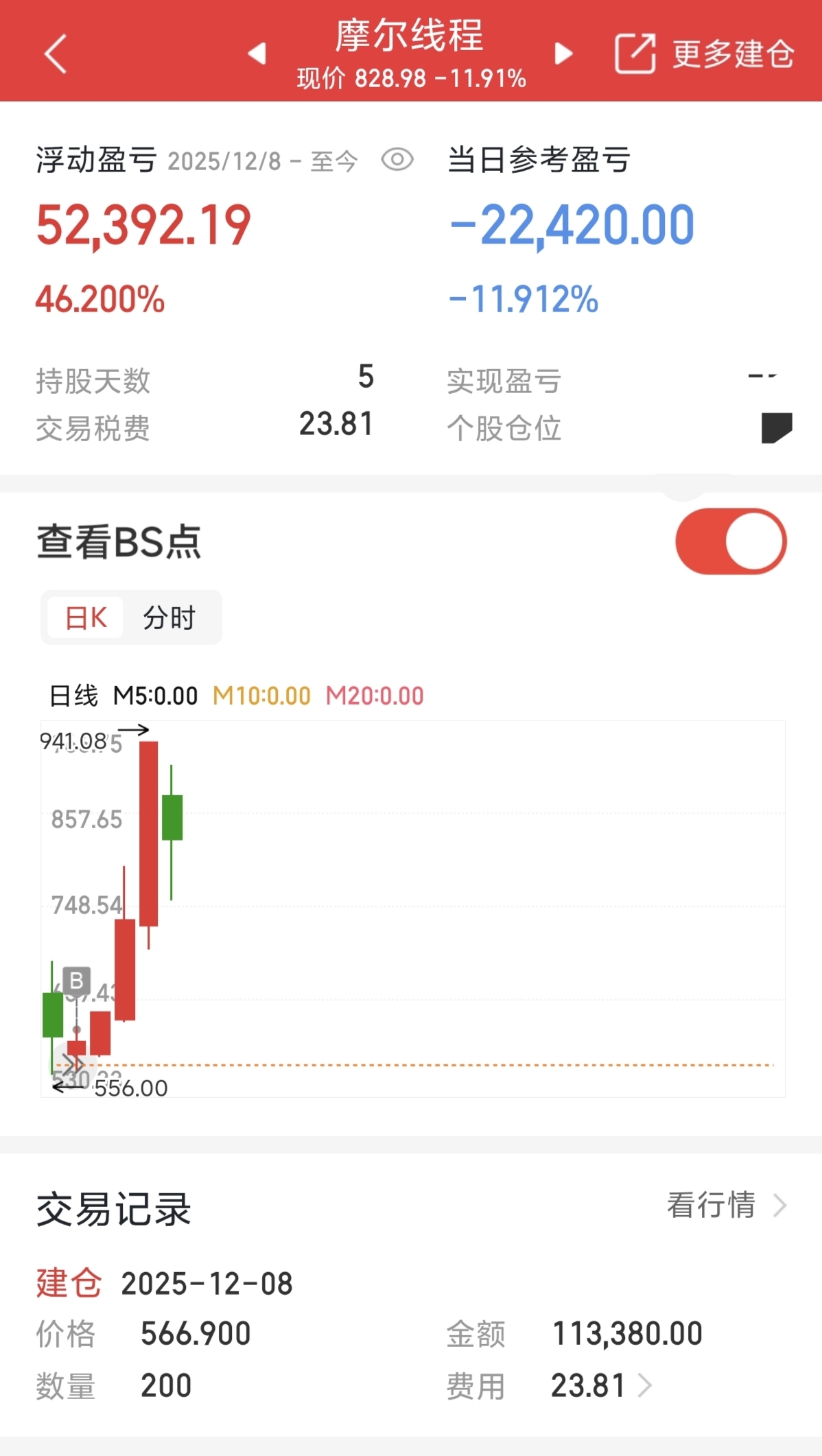 今早看到$摩尔线程-U(SH688795)$ 发公告提示风险,我心里就咯噔一下,上次$安泰集团(SH600408)$ 也是,发完公告就一直在跌,感觉今天摩尔线程肯定要大跌。果然,竞价直接低开超过6%,开盘后继续低开低走,不过,我566的成本暂时还是守得住的,我打算继续格局一下。