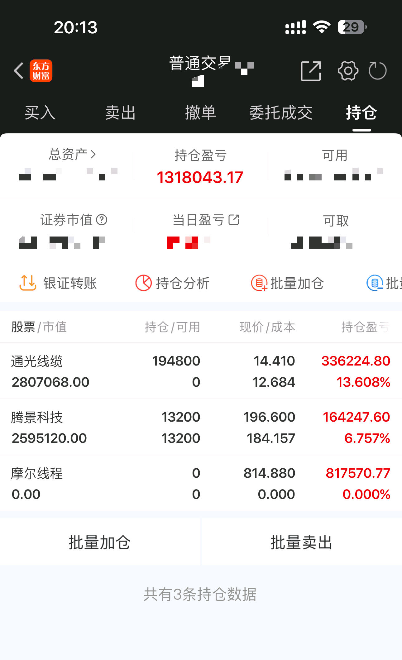 今天行情来了个漂亮的反转,上午指数几乎全绿,下午出现明显的弱转强信号。本周的行情有点延续上周的风格:从时间上看,上周是头尾涨中间跌,本周也不例外,关注这一规律是否会延续。从行情上看,最强主线商业航天还在持续穿越中,直到今天,板块仍是批量涨停潮。此外大科技也是人气不减,上周的谷歌链TPU到本周仍然强势表现。尤其是AI出海科技光模块细分走出连续新高的走势。也就是说,本周账户想要有不错的正反馈,那商业航天、大科技等就至少要抓到一个商业航天只有找到合理的对标后,你才能够对绝对核心龙头的持续性以及未来空间有个合理的预期。也正是基于此,你才能够在核心龙头出现分歧的时候敢于逆势上车。商业航天核心品种动力刚好是在本周2出现分歧调整,大家深水上车。这就是我们常说的,怕的不是高,而是你是否知道为什么这么高,以及能否看到更高?!总的来说,行情难度还在持续提升,踏准节奏才是关键$腾景科技(SH688195)$$通光线缆(SZ300265)$