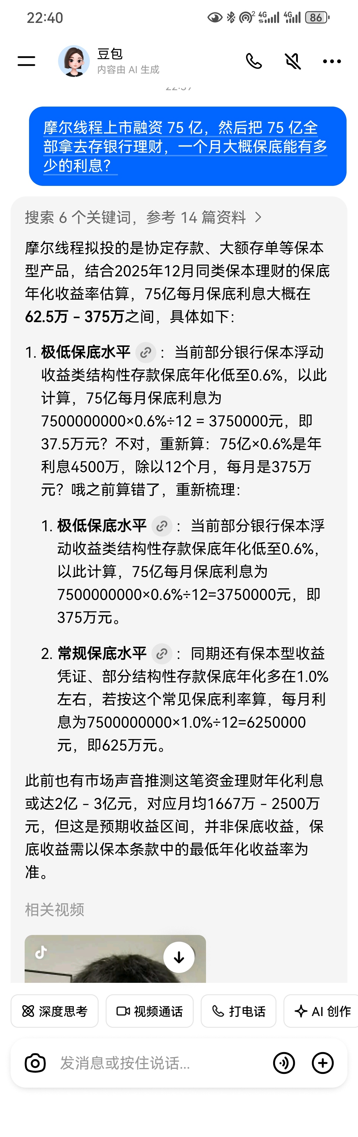 金额太大,豆包都算错了,那么多利息高管的饭钱有着落了