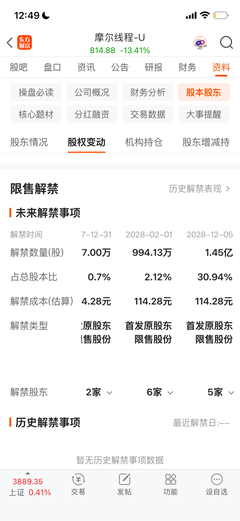 $摩尔线程-U(SH688795)$ 看看三年全部解禁