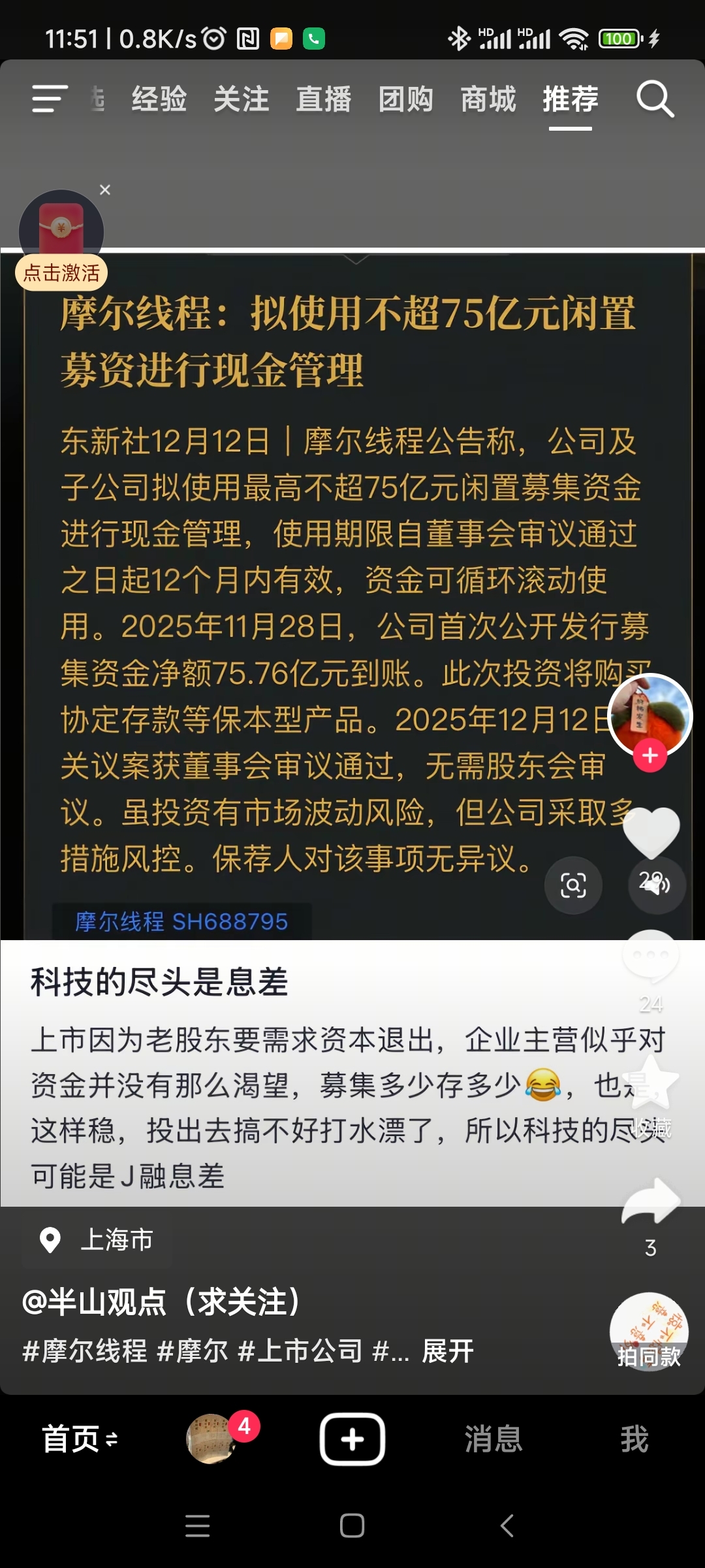 $摩尔线程-U(SH688795)$ 资本市场来钱这么快,还研发什么?吃利息就够了。