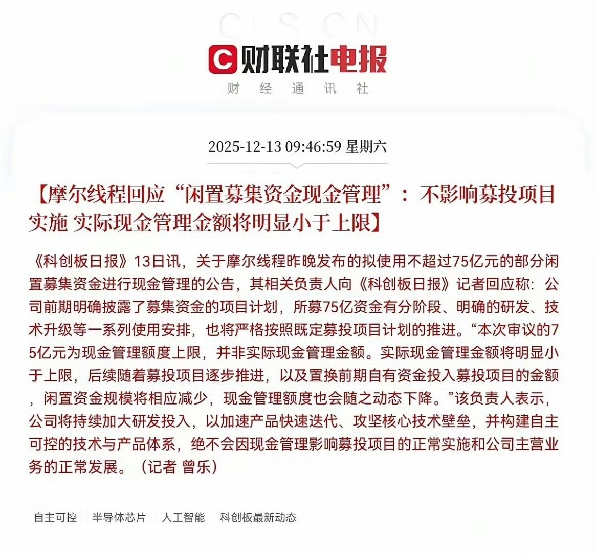 $摩尔线程-U(SH688795)$ 它根本就不缺钱!是不是颠覆了你的认知,IPO募资理财是不是毁三观!