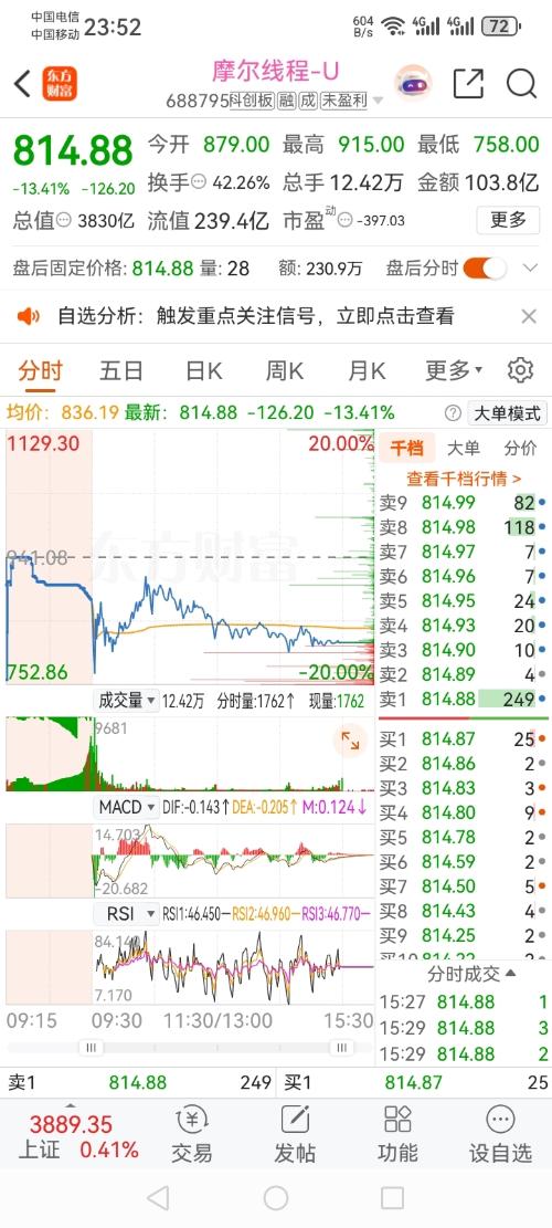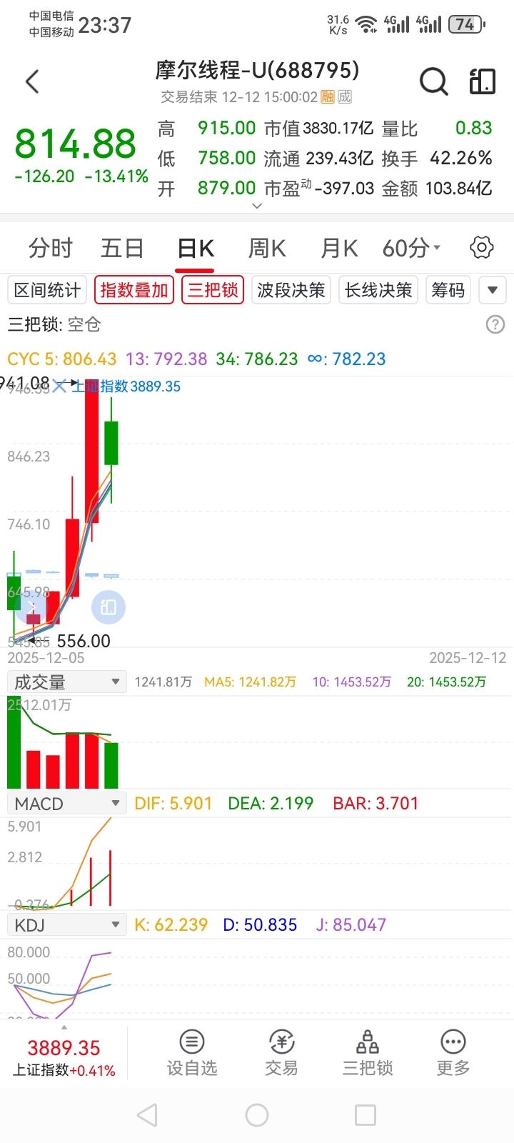 股票投资并非单纯的赌博,而是需要思考力和忍耐力的结合,才能确保投资的安全性,公司成长才有价格增长才有价差。现在没价差了,几百倍,几千倍,几万倍市盈率的股都在涨,低市盈率的股没人抄,一条真理是筹码,看在小数人手上,还是少数机构庄家手上?最近科技股摩尔线程688795热炒股价成妖精!