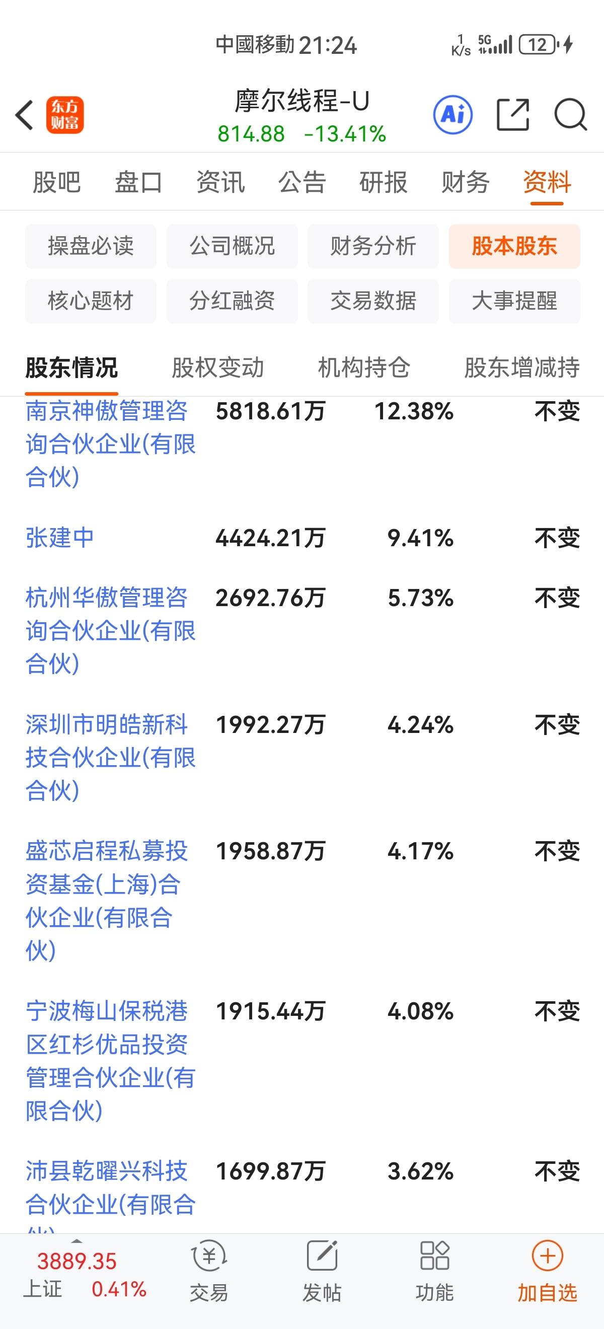 $摩尔线程-U(SH688795)$ 这十大股东有意思了,都是持股一家上市公司!,都是,有限合伙!!嘿嘿!等着看!!!!