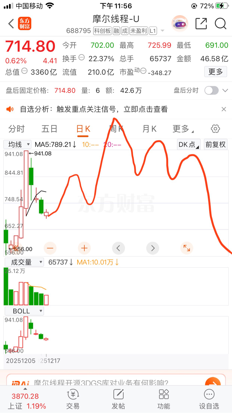 $摩尔线程-U(SH688795)$ 留个预测图。以后过来看看差多少?