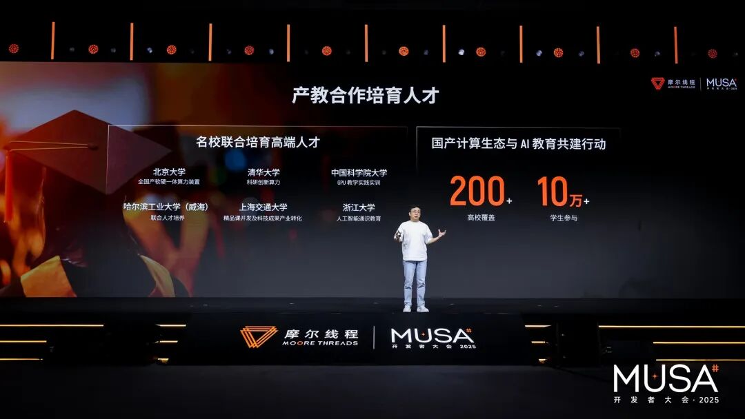 当前,摩尔学院已汇聚数十万名开发者,与200多所高校开展产教融合合作,通过多个开发者计划,形成了从学生到科研人员的全周期培育体系。这种扎根本土的人才培养模式,为生态建设提供了源源不断的内生动力。而MUSA生态中心的建立,以及核心技术组件的开源计划,更是降低了开发者的入门门槛,形成了从硬件到软件再到开发者的正向循环。