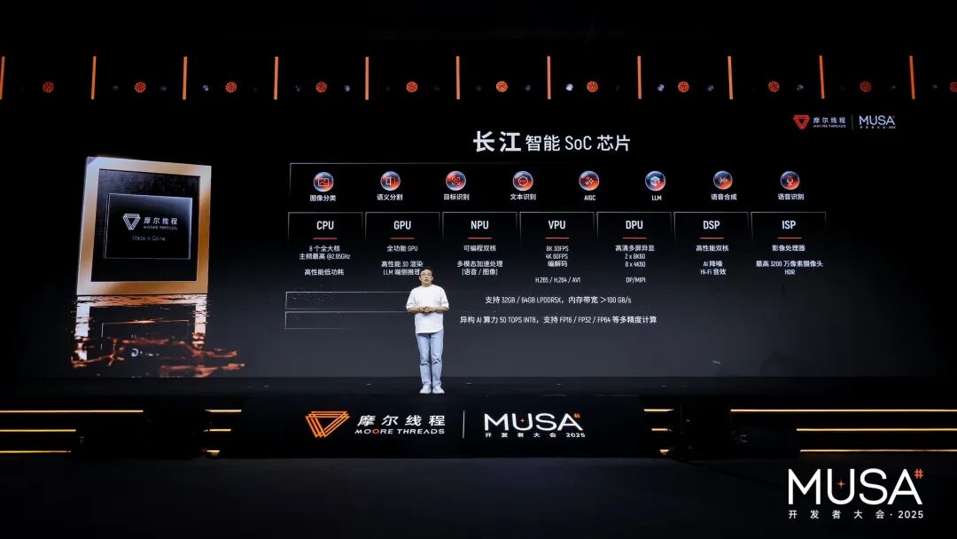 在端侧市场,MTT AIBOOK的发布填补了国产AI算力笔记本的空白。它搭载的自研“长江”智能SoC芯片,本质上是对标英伟达Grace Blackwell的产品,能够提供50TOPS端侧AI算力,支持Linux、Windows等多系统无缝切换,预置完整AI开发环境与数字人智能体“小麦”,实现了专业开发与日常办公的场景融合。这种开箱即用的个人智算平台,让AI算力真正走进开发者日常。