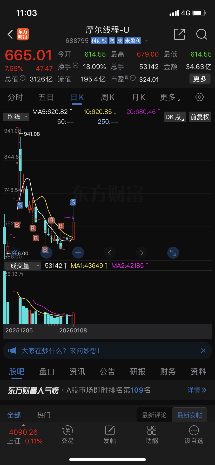 $摩尔线程-U(SH688795)$ 今天2000股全出了,魔王加油,1000必过!