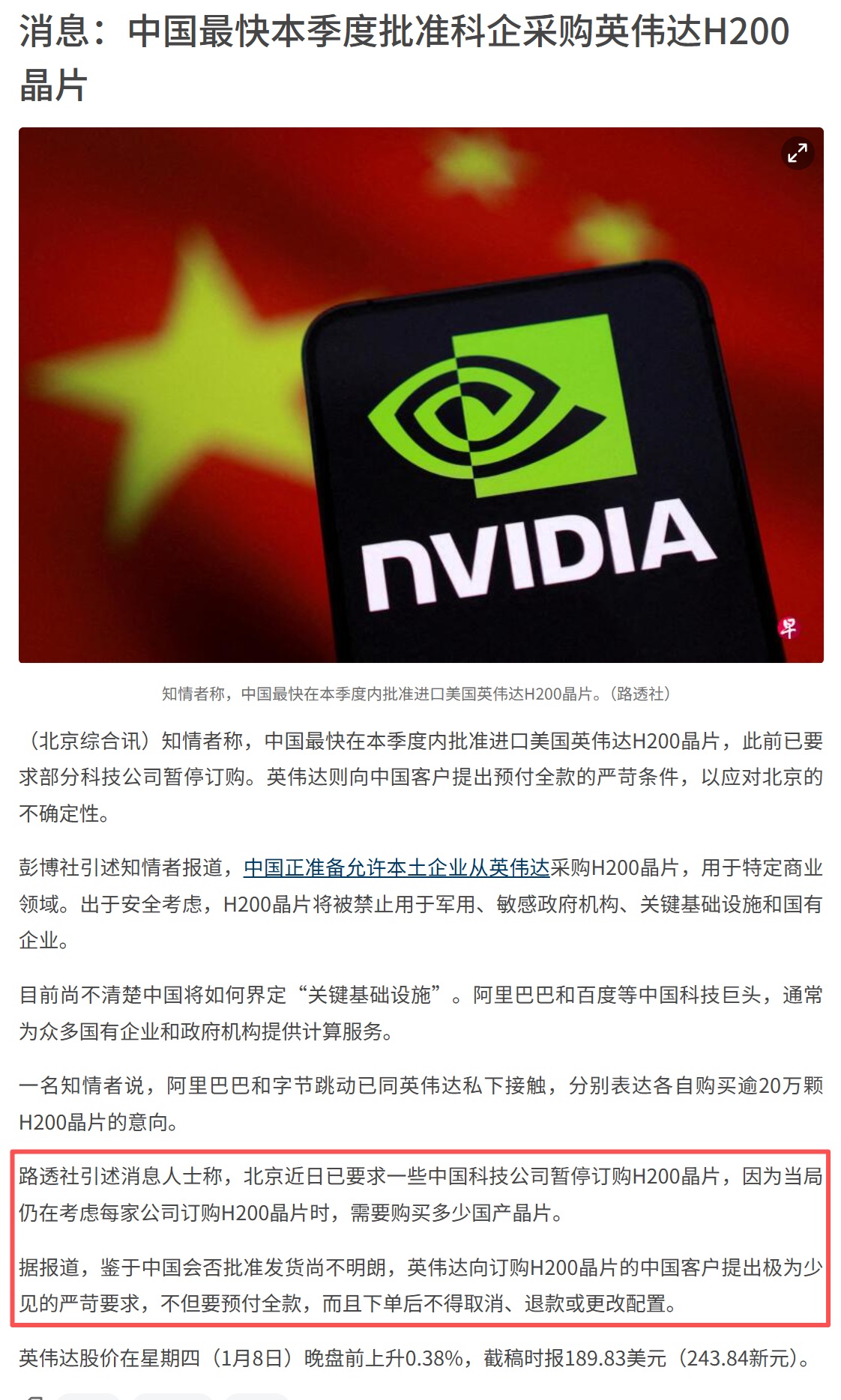 针对AI、GPU的博弈开始了。美国开始批准销售中国H200。中国为了支持国产GP